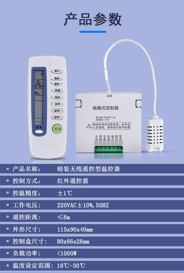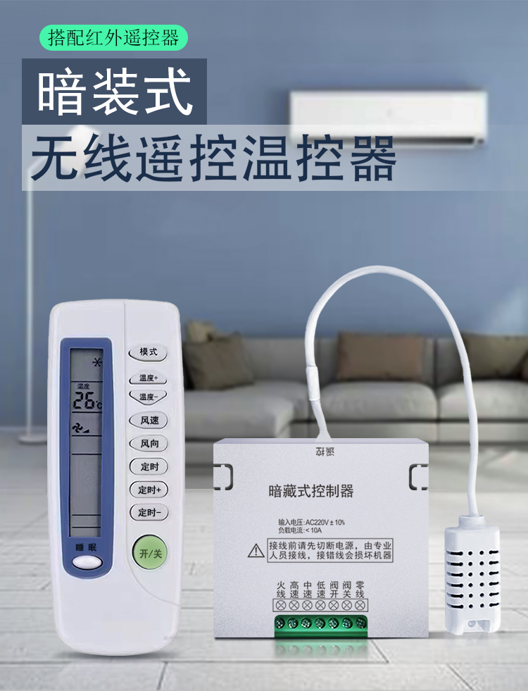 暗装暗藏式中央空调风机盘管温控器带遥控